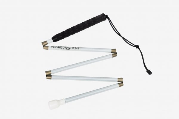 Viisiosainen valkoinen keppi, joka on valmistettu hiilikuidusta. Kepissä suora musta kädensija, kädensijan materiaali kumia. Keppi kokonaan heijastava.